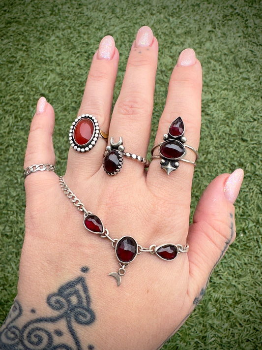 Sold outGarnet goddess ring sz 7.5