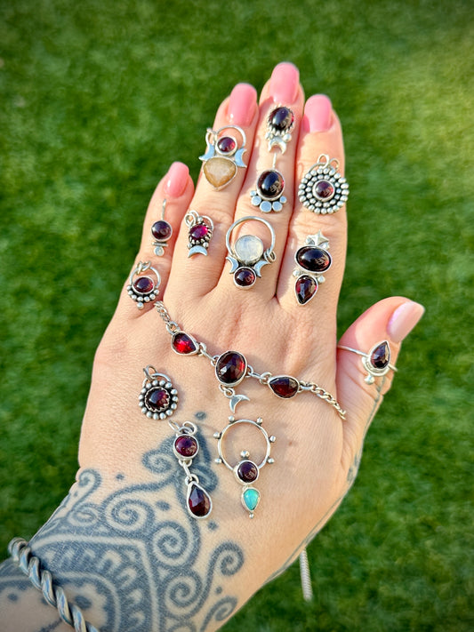Sold outGarnet teardrop ring sz 9